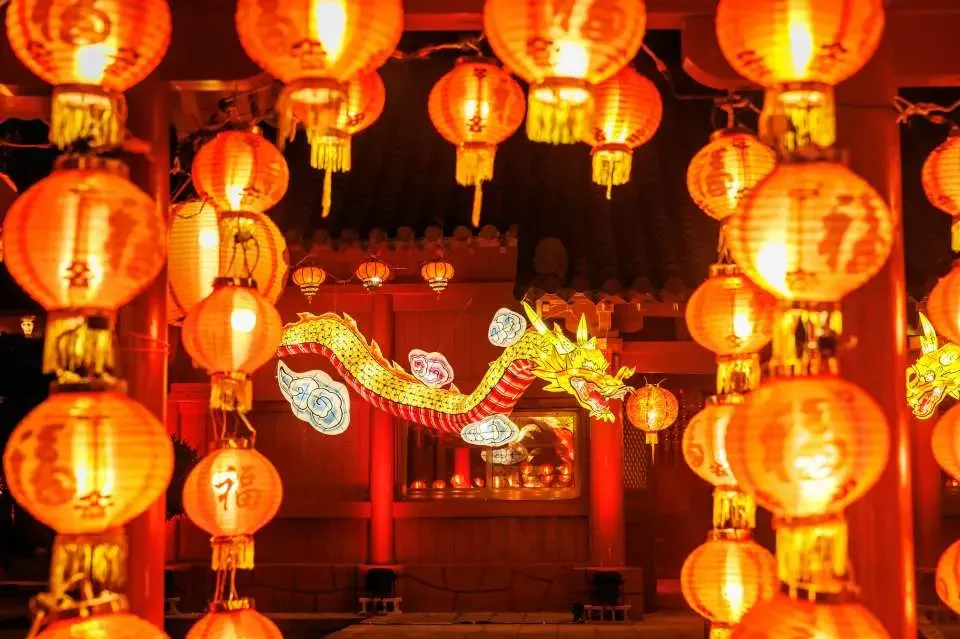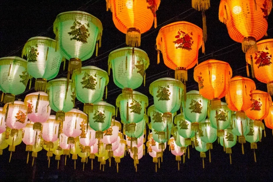Head inside the Kanade Theater and you'll find the ceiling completely adorned with vibrant Vietnamese lanterns and Chinese lanterns hanging in every direction. They sway gently on winter nights, casting color all around you. If you only take one photo at the festival, this is the spot.