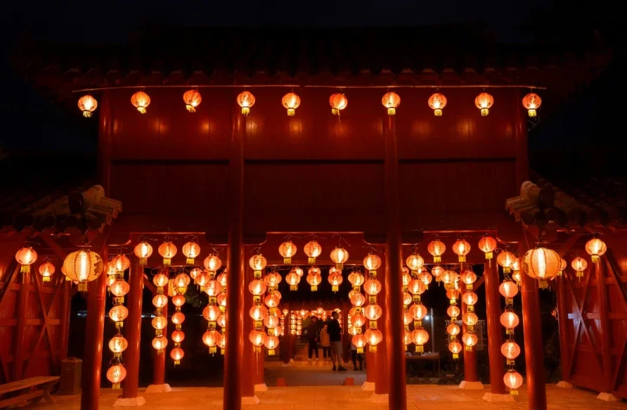 The festival isn't just pretty lights, though. It's rooted in real history. The Murasaki Mura Ryukyu Kingdom once sat at the center of a thriving trade network connecting China, Japan, Korea, and Southeast Asia. The lantern tradition itself traces back to Chinese New Year celebrations that marked the return of light after winter, a custom shaped by centuries of Chinese, Ryukyuan, and Japanese cultural exchange. Thousands of paper lanterns of various shapes and sizes illuminate the ryukyu-style architecture in a way that feels almost fantastical after dark.